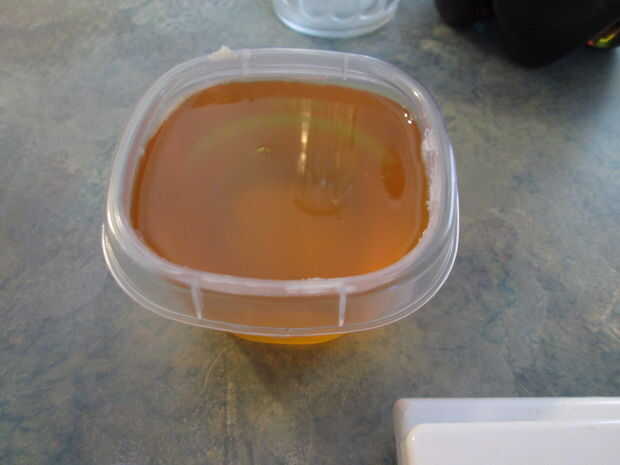 Vierte 4 onzas del labio bálsamo en un recipiente con una tapa apretada del sello.  Lo pongo en la nevera para que yo puedo mantener fresco hasta que tuviera más tubos.