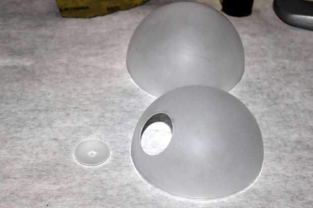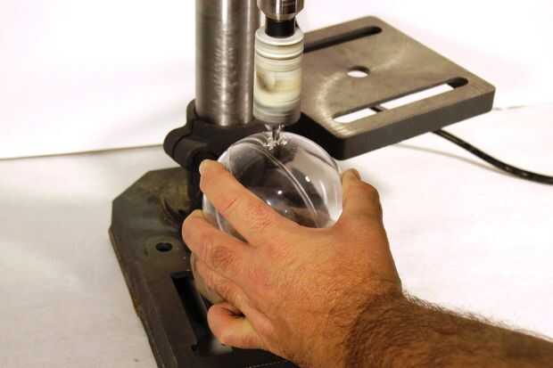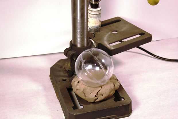 2. Coloque el orbe en algo estable - utilicé un trozo de arcilla cerámica. Usted necesitará mantener el orbe con un agarre como Vice y mantenerlo constante durante la perforación, también tienen cierre para que las dos mitades no abrirá y arruinar todo.