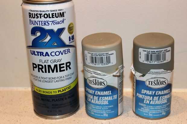 4. a continuación, rocíe todo el mundo con la coat(s) de pintura de base (gris más claro). Dejar completamente seco.