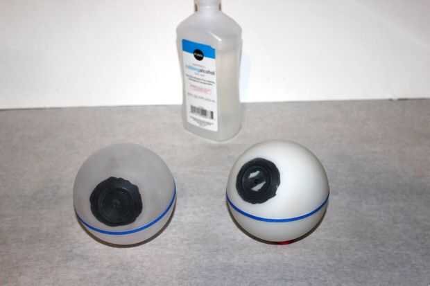 3. Rocíe primer en el mundo. Esto puede tomar varios pases luz... usted no quiere drippage. Puse los globos en anillos pequeños de arcilla para mantener constante y girado como necesario entre capa y capa.
