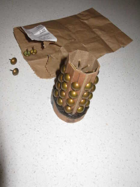 6. ahora es el momento para pintar el cuerpo antes de pegar en las tachuelas. Yo también cortada de los extremos de las tachuelas con cortador de alambre, de lo contrario el interior se vería algo de Hellraiser.