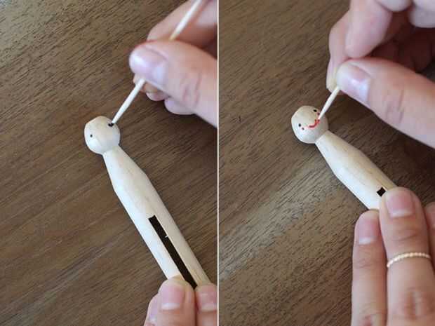 Comience por dibujar la cara con la punta de un palillo de dientes.