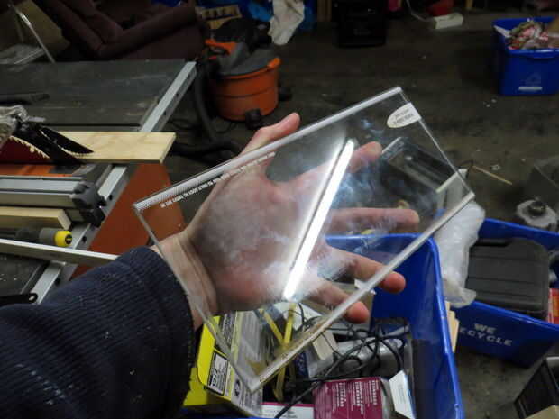 El plato accionado hace un trabajo decente de la restauración el bisel de una herramienta que ha sido dañado o mellado, pero no la herramienta realmente aguda. Para ello, un enfoque simple barato agradable es el método de escarpa miedo ; Básicamente, usando papel de lija de incrementando cuenta de grano pegado al cristal. No tengo ningún cristal práctico, así que quité la puerta de vidrio de un roto horno tostador, raspar el pegamento y marcas de la quemadura y le dio una buena limpia. Las dimensiones de la placa son 290 × 133 mm. Tan sólo unos 4 mm de espesor, pero pensé que dado fue diseñado para manejar grandes fluctuaciones térmicas debe ser razonablemente duro. Cualquier tipo de vidrio está probablemente bien para este propósito, el más grande y más grueso mejor. Me gusta mina porque ninguno de los bordes están afilado - has todos sido prolijamente biselados y pulidos.