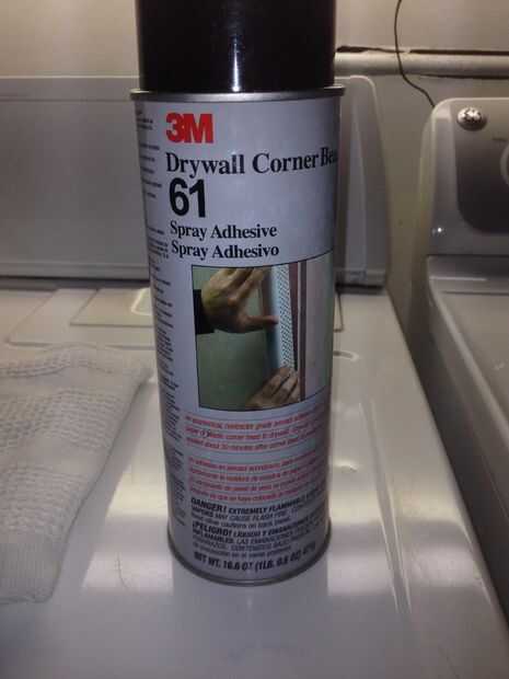 -3 M: adhesivo en aerosol 61 (reborde de esquina de yeso); o cualquier adhesivo en aerosol.
