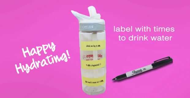 Hidratante de feliz! Si usted siente que necesita más agua durante el día, crear una segunda botella de agua para el turno de trabajo por la tarde.