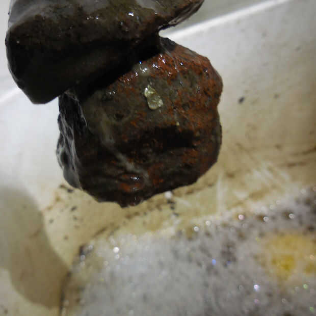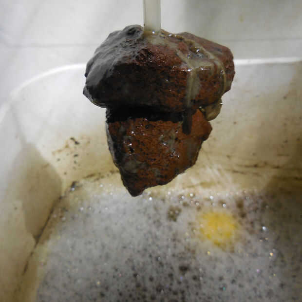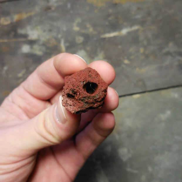 Roca de la Lava roja es excelente debido a su muy frágil. Tan frágil que sólo tengo la piedra en mi mano mientras que perforar a casi la velocidad más baja el taladro es capaz de producir. La broca realmente no perfore tanto rayado como un agujero en la roca. En todo caso, tenga cuidado!