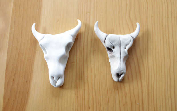 Colocar los cuernos puede ser complicado, así que trate de ser tan suave como sea posible. Usando su cuchillo o empujando la herramienta, rayar la base de cada cuerno y entonces la superficie donde se va ser adjuntarlos a ambos lados del cráneo. Una vez que ha atado a los cuernos y alisar el lugar donde se unen, puede pellizcar y rodillo al final de cada cuerno a más de un punto afilado, en que se encrespa un poco.