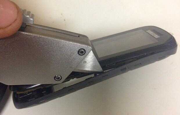 Con un cuchillo, suavemente Levante los bordes del teléfono celular aparte. Cuando has forzadas aparte, será en tres piezas.