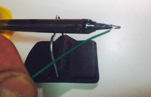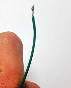 Con un soldador, coloque una pequeña cantidad de soldadura en la punta de un alambre.