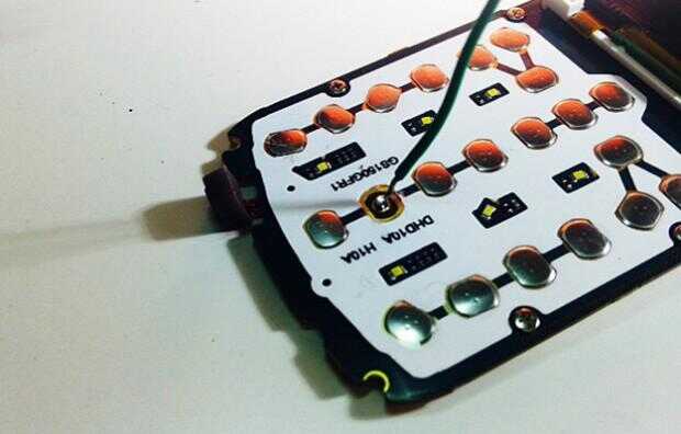Ahora el alambre al círculo de cobre en el medio del anillo de cobre de la soldadura. La soldadura no puede tocar el anillo de oro alrededor de ella o se arruinará el botón. Por esta razón practicó primero