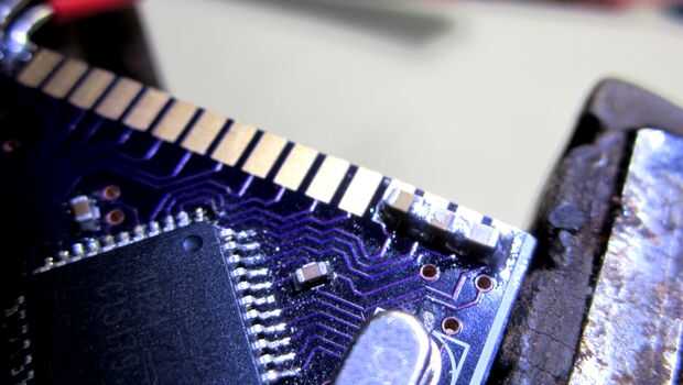 Optamos por utilizar condensadores SMT y a soldarlos a las pastillas, uno tras otro. Tenga en cuenta que nosotros sólo estamos préstamos las almohadillas para Pins 2 y 3 como puntos de soldadura pero no usando los pasadores en la hélice para nada!