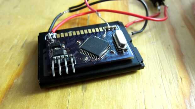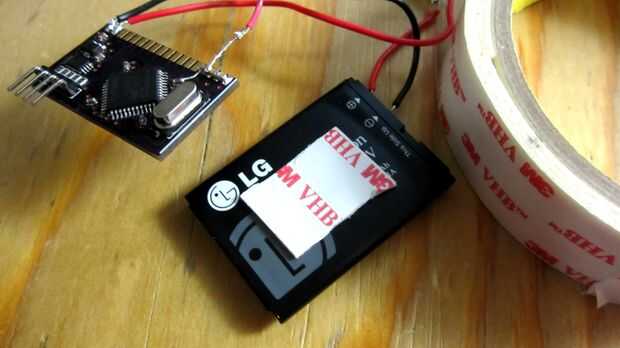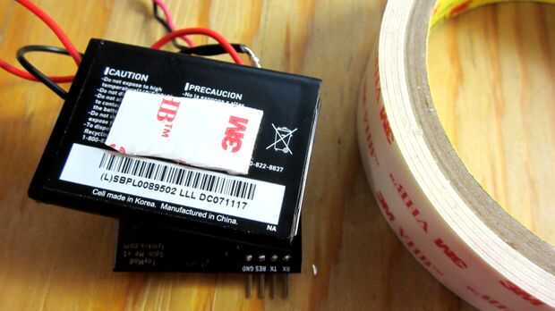 Primer paso es adherir el microcontrolador a la batería. Cinta de doble cara - bam! Puesto que los pernos necesarios para la programación de la hélice en esta tabla, asegúrese de que permite el acceso!