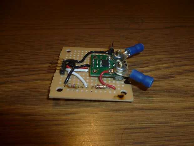 Nos mudamos el sensor de corriente y voltaje de la placa sin soldadura y en un Radio Shack proto board. Esto es más robusto y "permanente".