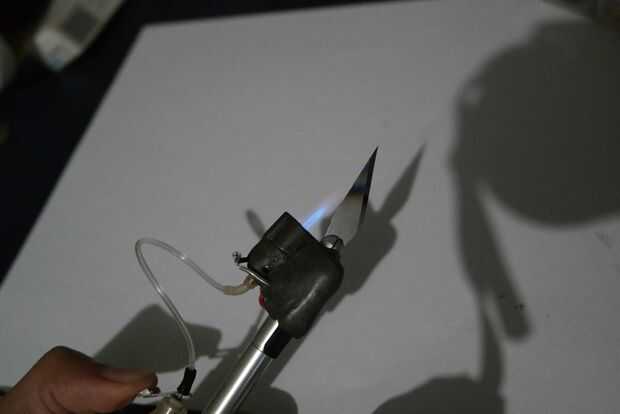 Luego conecte la manguera de combustible al tanque principal a la antorcha, puede pegarla para que la manguera no sale demasiado fácilmente (ver imágenes 2-5)