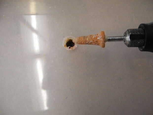 Como se mencionó antes, esta vez usé una Dremel para hacer el agujero. Recomiendo esta técnica sobre el taladro, para trabajar con envases de plástico.