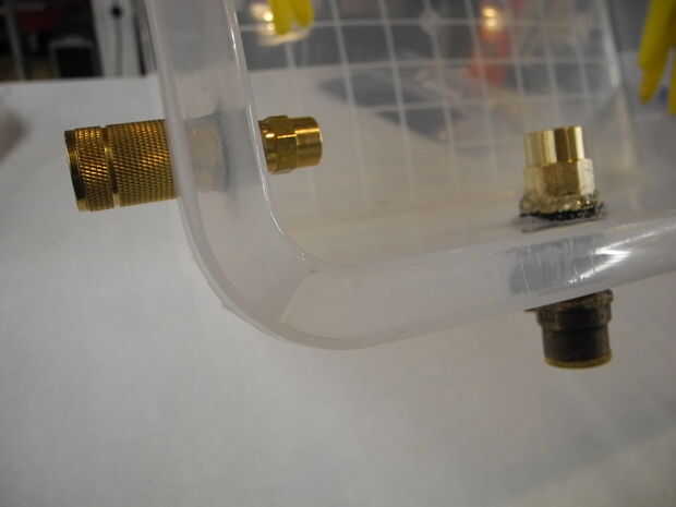Decidí poner las dos válvulas en la misma esquina de la cámara, para que yo no tendría otro rincón agotado y no podía colocar los elementos en él.