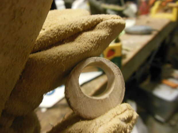 Este anillo se hace enteramente la forma madera encontrada en el barrio y en la costa de Oregon en la ciudad de Lincoln.Materiales y herramientas necesarias:1. de madera. un palo recto, por lo menos una pulgada de ancho o más.2. plano de bloque. cual