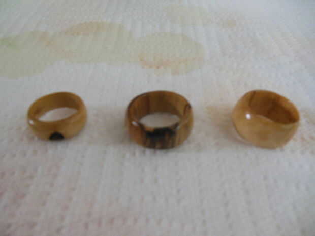 anillos de madera son hermosos.  Caliente y tienen un hermoso brillo cuando haya terminado correctamente.  No suelen ser muy duraderas, aunque.  A menudo crack a lo largo del grano después de su uso continuado.Anillos de madera doblados abordar este