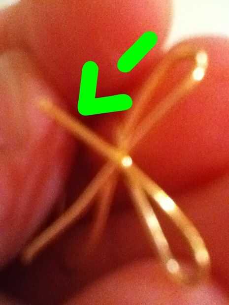 usa sus pinzas para cortar el extremo de la proa donde apunta la flecha verde en la fotografía