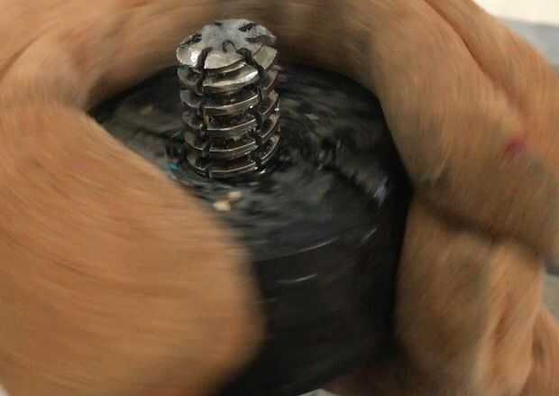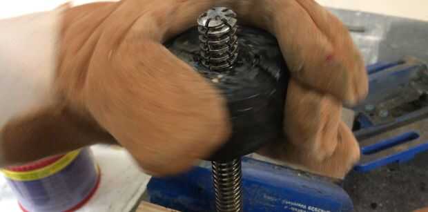 Mover la tuerca de arriba y abajo sobre el extremo del grifo de su husillo. (No lo sobre fundido.) Ayuda una gota de aceite. Puede ser difícil mover la tuerca por primera vez. Puede utilizar una llave para conseguir sueltos.