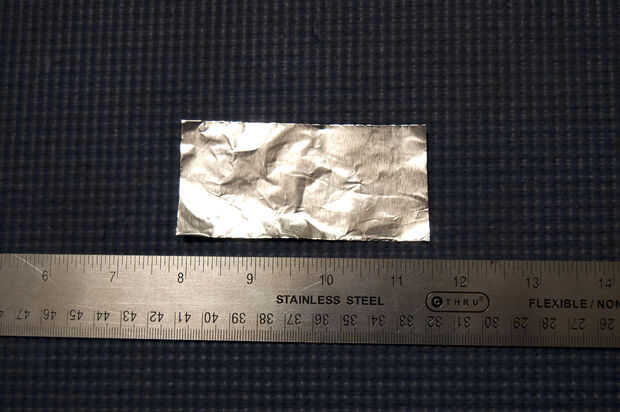 Corte el material conductor para que coincida con su material resistente. Asegúrese de cortar un pequeño trozo de la lámina de 2 "x 4" (ver segunda foto). Esto se utilizará para refuerzo en la ubicación del complemento. Solo ponerlo a un lado por ahora.