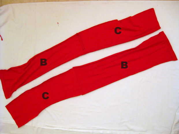 Se encuentran 2 B y C las tiras uno encima del otro, lado derecho de la tela juntos.