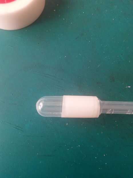 Después de eso, tenemos que hacer la ronda de punta de la pipeta un poco más gruesa para dar el escape de polvo magnético el campo magnético y bajar de nuevo a la jarra.