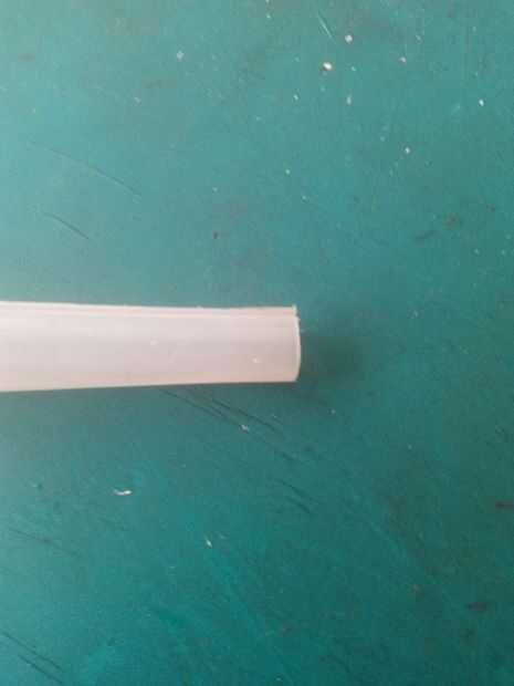 Comienza por cortar unos centímetros por el lado puntiagudo. Intente poner el pasador en la abertura para comprobar si se ajustan. Si es demasiado pequeña, puede cortar unos centímetros más. Si la abertura es demasiado grande, puede utilizar alguna cinta adhesiva para agrandar el diámetro de la espiga que utilizas.
