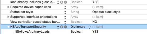 Si tienes errores con NSURLSession, necesita habilitar NSAppTransportSecurity en el plist. (ver foto aquí)
