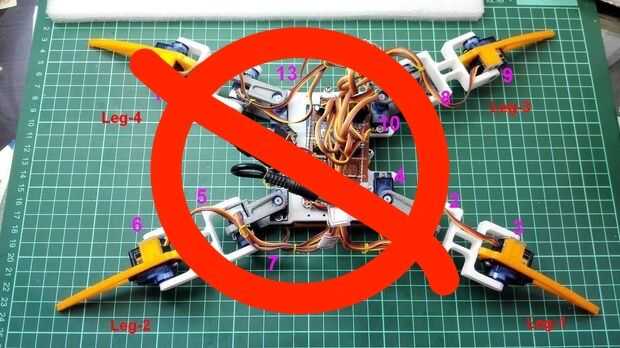 Asegúrese de que el servo de las piernas debe hacer coincidir el número de pin de la placa principal y dirección de la pierna, si no, las piernas se vuelve loca...