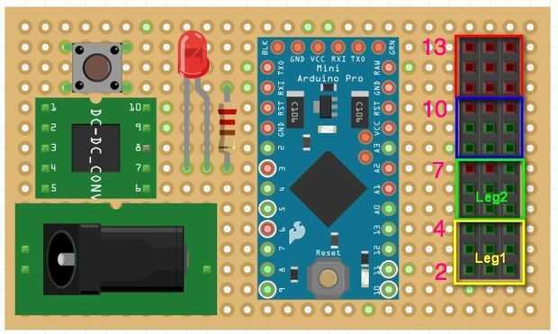 4. usando la cabecera pin hembra en vez de soldadura los módulos (Arduino, DC-DC) en el perfboard directamente