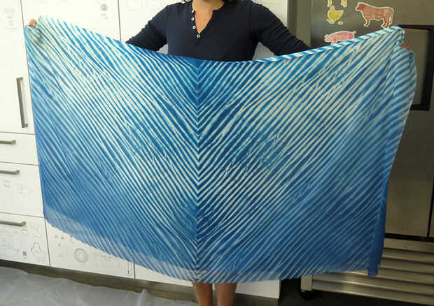 Como se mencionó en el último paso, no dejó mi tela sentarse en el tinte lo suficiente para lograr este color oscuro que se muestra arriba. Aprendí de teñido de una serie de cosas que con indigo que los medios tonos lavan fácilmente, mientras que el palo de tonos más oscuro realmente bien. Tenga en cuenta durante el proceso de tinte para conseguir el color que desee.