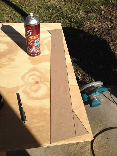 Empecé creando un patrón de papel y pegado directamente a la madera contrachapada cerca de los bordes para conservar la madera.