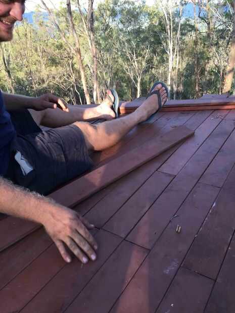 utilizando árboles de reciclado de un desarrollo medimos y cortar las tiras y había atornillado en nothces en el lado exterior del árbol, tablas cubiertas de repuesto eran dispuestos en el borde de la cubierta y luego más repuestos placas se atornillan a la barandilla y el rodapié para asegurar una unión fuerte.