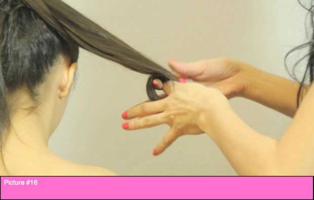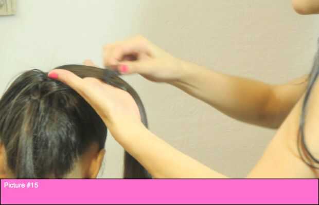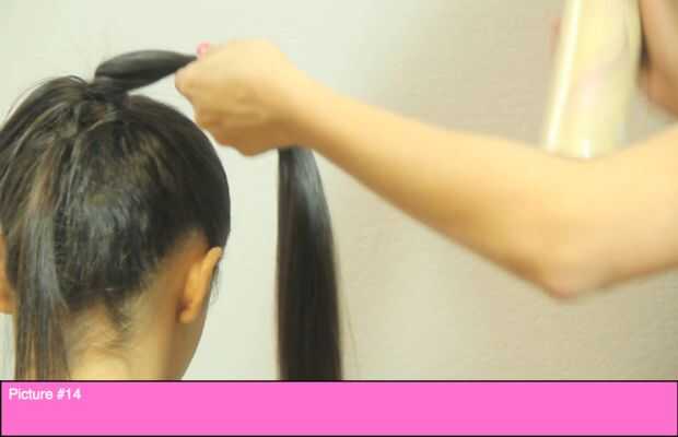 Cuadro #13 y #14 de imagen: Seguro esta parte con un clip, aerosol de pelo entonces otra vez el pelo