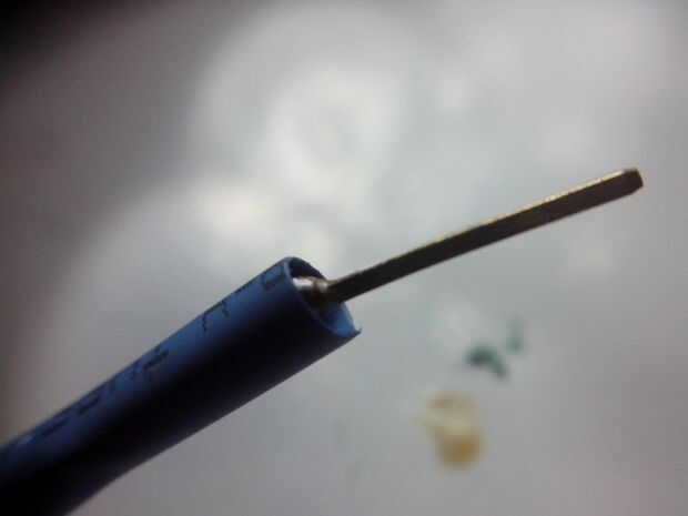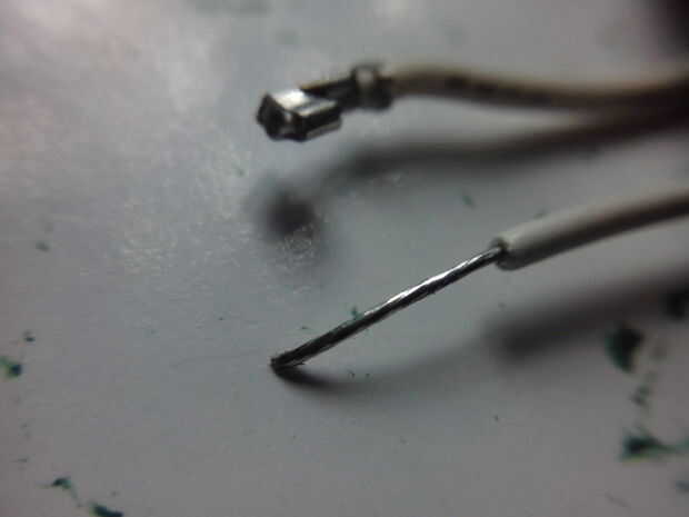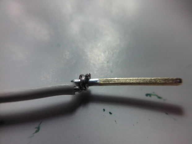 En primer lugar, usted necesitará quitar el plástico del extremo de un alambre, sobre 5-6mm, entonces la envoltura de cable alrededor de desodered pin te desoldar de la placa base, aplicar algún flujo y otra vez por cable bruja del otro extremo de la soldadura tiene hembra. Cuando usted hace eso, cortar un pedazo de tubo de heatshirnk y aplicar para ese fin.