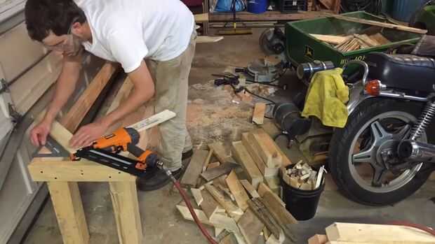 He usado clavos de calibre 18, poner dos en cada extremo y mi manera móvil a lo largo del Banco, asegurando para permanecer centrado mientras trabajaba.