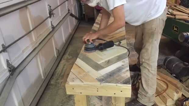 También puede utilizar un cepillo para conseguir todos los listones de la plataforma a la misma altura de modo que la superficie del Banco no tiene alta y baja puntos en las tablillas. Para éste, sólo fijarse como está y utilizar una lijadora para completar algunos de los bordes de los listones de la plataforma porque no tenían la misma altura.