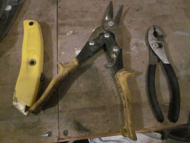 4 - tijeras herramientas-estaño, alicates, algún utensilio de corte, (Si utilizas un pájaro), vicio, martillo.