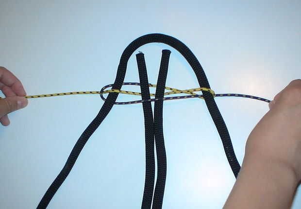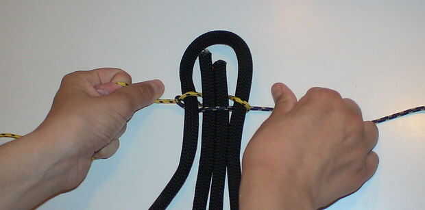 Equipo necesario:Un arnés de escaladaUna cuerda de escaladaPaso 1: Familiarizarse con el arnésEl lazo más grande es el lazo de la cintura.Los dos lazos de tamaño medianos en la parte inferior están las perneras.El bucle vertical es el anillo ventral
