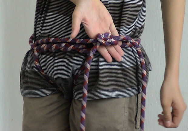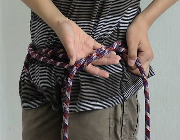 Equipo necesario:Un arnés de escaladaUna cuerda de escaladaPaso 1: Familiarizarse con el arnésEl lazo más grande es el lazo de la cintura.Los dos lazos de tamaño medianos en la parte inferior están las perneras.El bucle vertical es el anillo ventral