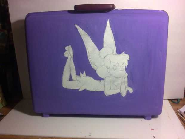 El solamente la dificultad de la pintura había era pintura una línea fina para detalles esquematización por la superficie áspera de la maleta.