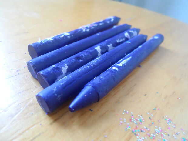 -A continuación, Pele la envoltura de crayones púrpura 3-5. Puede utilizar diferentes tonos de morado o seguir solo con uno.