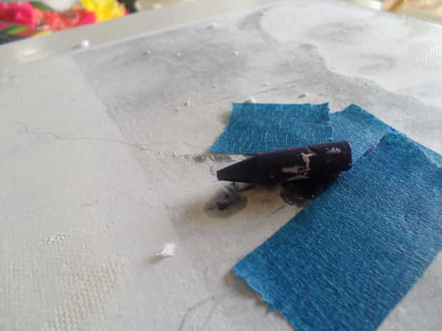 -Tome una pieza y con su secador derrite un lado de él. Lo suficiente como para que la tiza es brillante y un poco pegajosa.