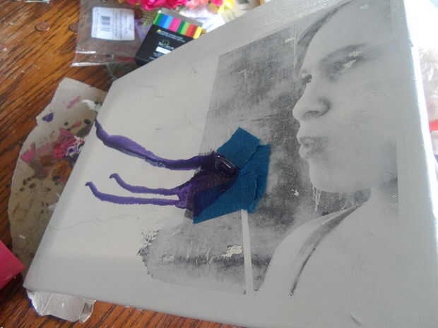 -Para agregar otro pedazo de Crayola, tomar tu secador y colocarlo sobre el punto que quieres creyón para pegarse a. La cera que ya se ha secado, se calienta otra vez. Mientras que la cera esté caliente, coloque su nuevo pedazo de lápiz sobre el lienzo y déjelo secar durante unos segundos antes de que se derrita.