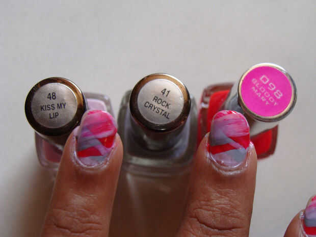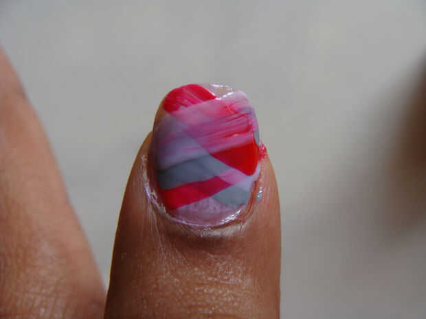 se puede hacer este arte de uñas con diferentes coloresPaso 1: materiales 3 esmaltes de uñas de diferentes coloresPalillo de dientesHisopo de algodónBandeja pequeñaUñas limpias (se puede ver mi instructable sobre cómo limpiar tus uñas)Paso 2: procedi