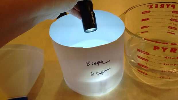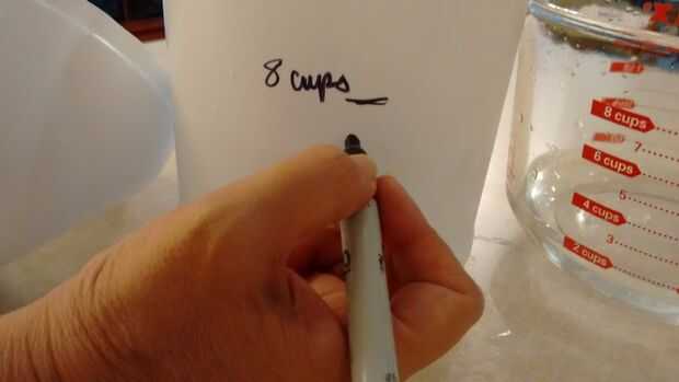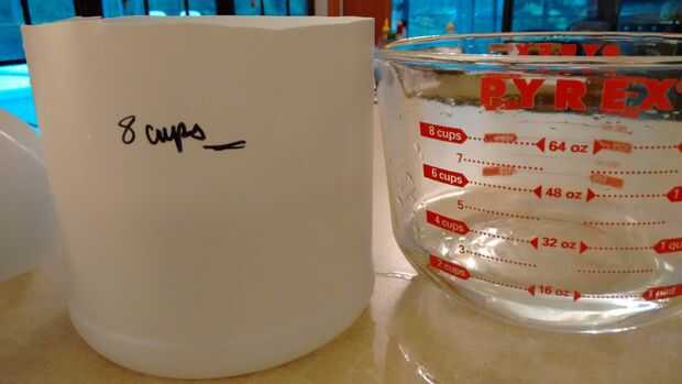 Quería que mi contenedor marcado en dos taza de medidas, vertido de dos tazas de agua, y luego la marca correspondiente. Usted podría también Marque sola taza medidas e incrementos de, si así lo quieren.