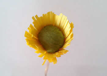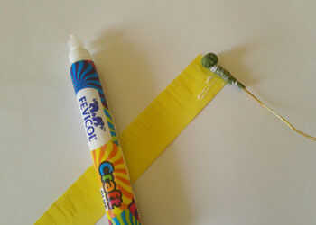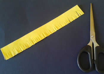 Tomar el papel de color amarillo y cortar una tira de 2 x 20 cm