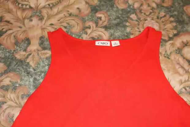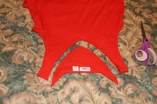 Esta camisa tiene un escote en "V", así sólo cortar la parte trasera de la camisa para que coincida con la parte delantera y tiene las asas de la bolsa ya hecho. Una camiseta regular puede cortar donde usted elija, pero usted no quiere cortar la apertura demasiado grande, que usted quiere dejar las asas grandes, suficiente para que sean estables.