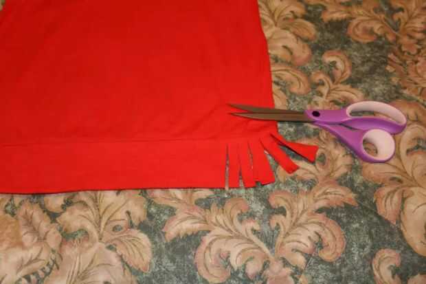 Corte tiras en la parte inferior de la camisa 1/4 a 3/8 pulgadas ancho y al menos 2 1/2 pulgadas de largo.